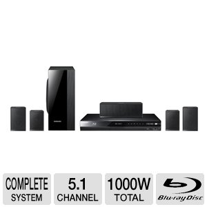 The Samsung HT-4500 is a 3D home theater that lets you connect to even more entertainment. 3D home theater entertainment adds a powerful web-enabled gateway with Samsung Smart TV, opening up the entire Internet to your living room, with the ability to browse sites, access Samsung TV apps, and search for content both online and on your TV. When it's movie time, the power of 3D technology delivers immersive depth and an unparalleled cinema-quality 3D experience, with an impressive 1000 Watts of 5.1-channel audio. And the multi-format disc playback gives you greater movie-watching versatility.